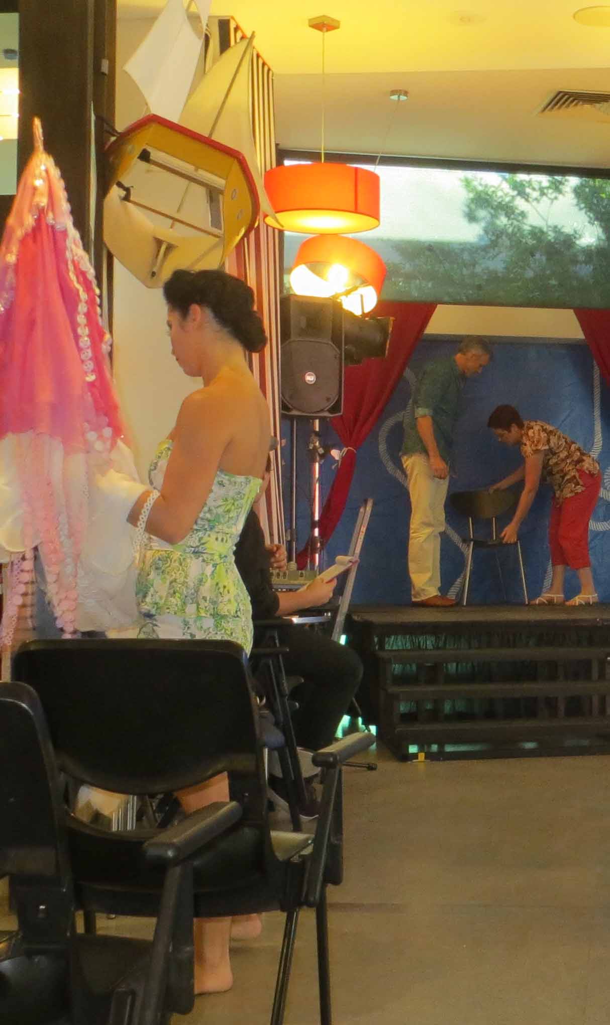 Burlesque dancer checks a costume